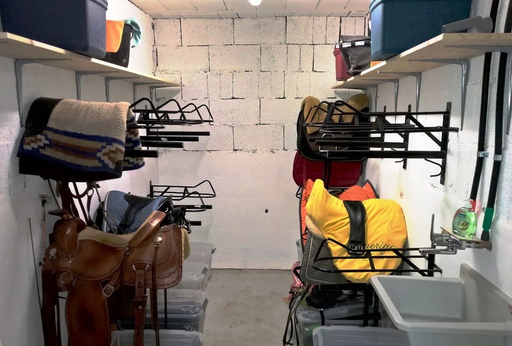 Die Sattelkammer bietet Platz für Pferdezubehör und Pferdeutensilien des Besitzers.