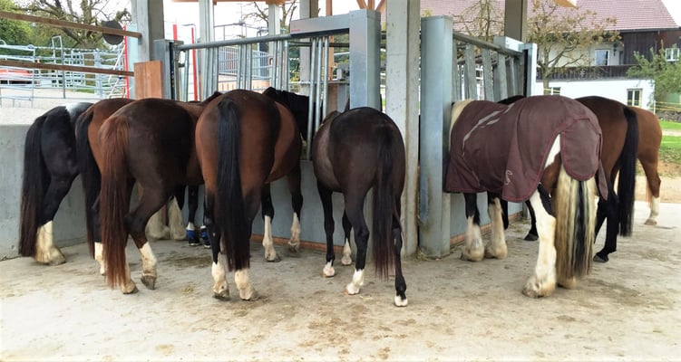 Die Kraftfutterportionen sind variabel pro Pferd einstellbar und sind über den ganzen Tag von dessen verteilt abzuholen.
