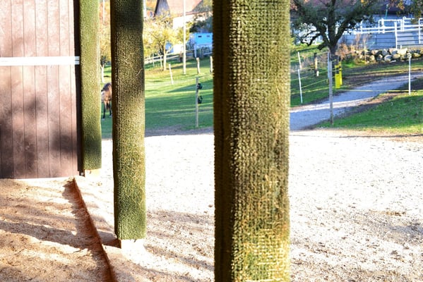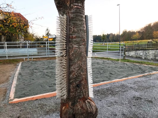Die Holzträger sind mit Kratzmatten eingefasst welche sehr gerne von den Pferden gebraucht werden.