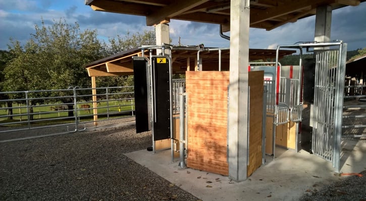 Kraftfutterstation mit Selektionstor zu einer weiteren zusätzlichen Heuraufe